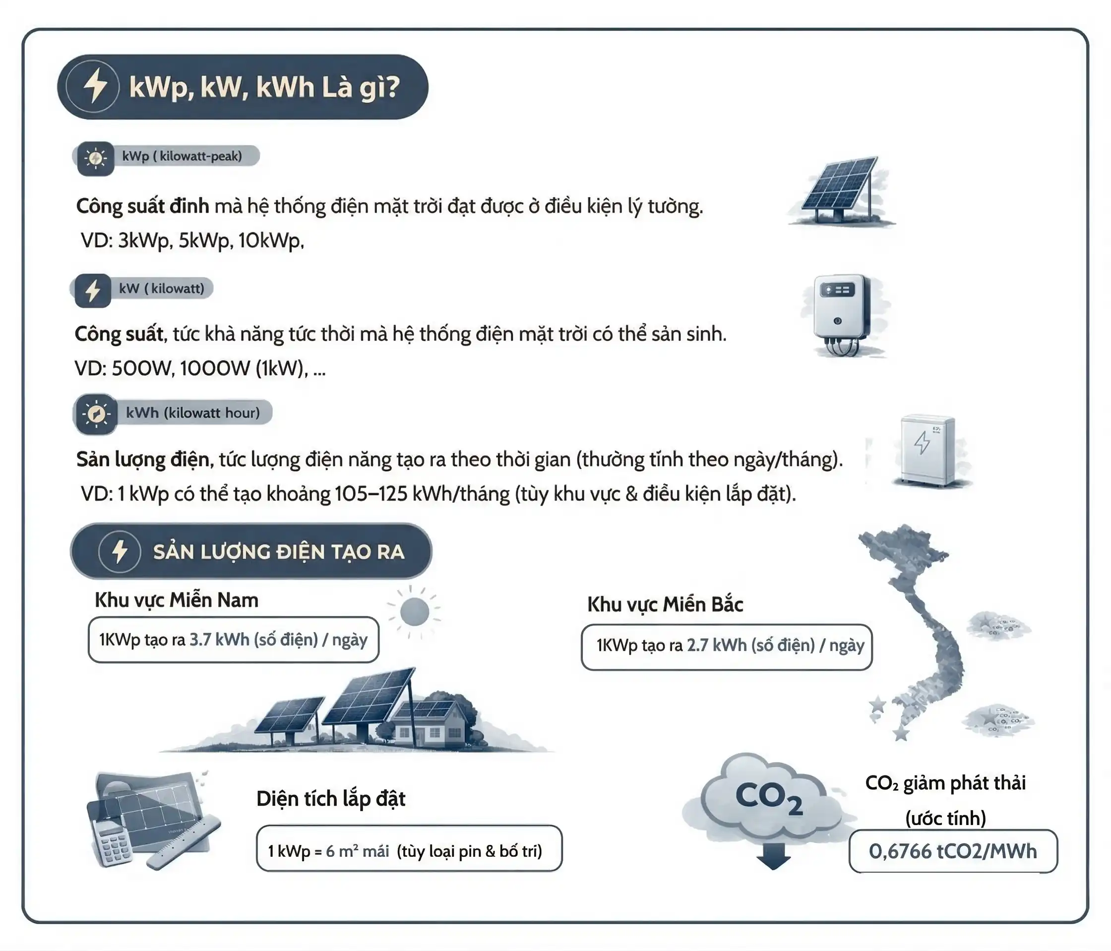 1 kWp hệ thống điện mặt trời tạo ra bao nhiêu kWh điện mỗi ngày?